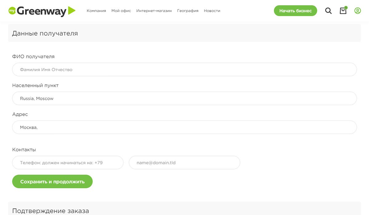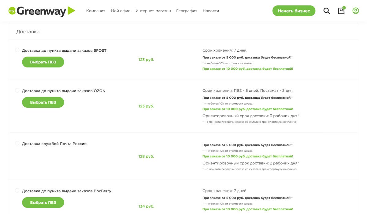 Доставка продукции Гринвей осуществляется по всей России, а также в Казахстане, Киргизии, Узбекистане, Беларуси, Украине, Армении, Грузии, Азербайджане, Молдавии, Египте, Турции, Евросоюзе. Подробнее о доставке В зависимости от выбранного вами способа доставки будет отличаться стоимость и сроки доставки.